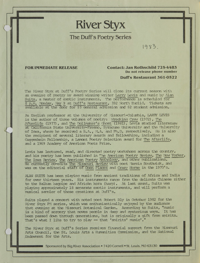 River Styx - The Duff's Poetry Series (Image)