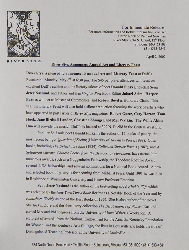 River Styx Announces Annual Art and Literary Feast (Image)