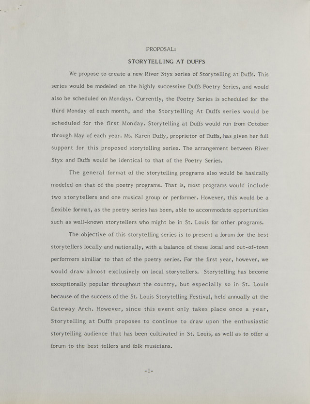 Proposal : Storytelling at Duffs (Image)