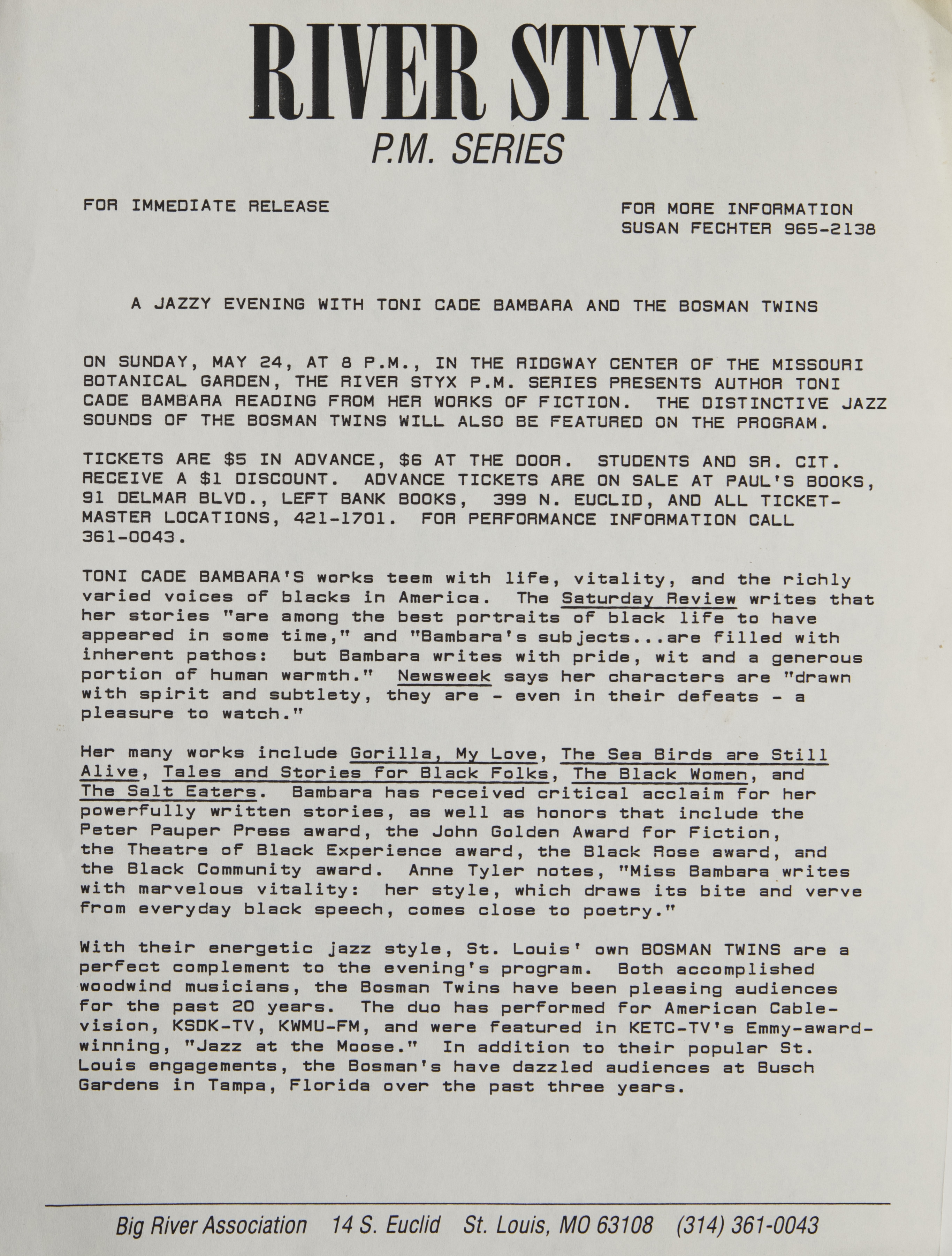 A Jazzy Evening with Toni Cade Bambara and the Bosman Twins (Image)
