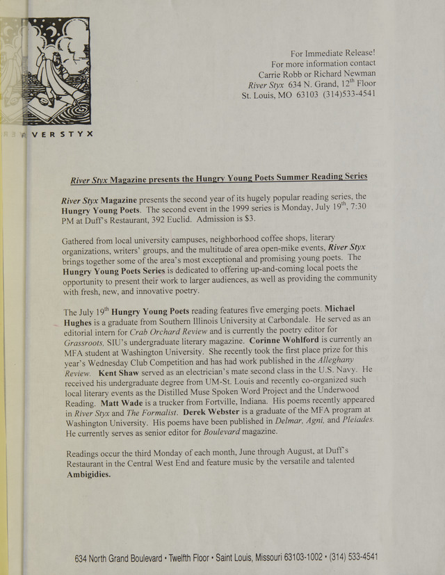 River Styx Magazine Presents the Hungry Young Poets Summer Reading Series (Image)