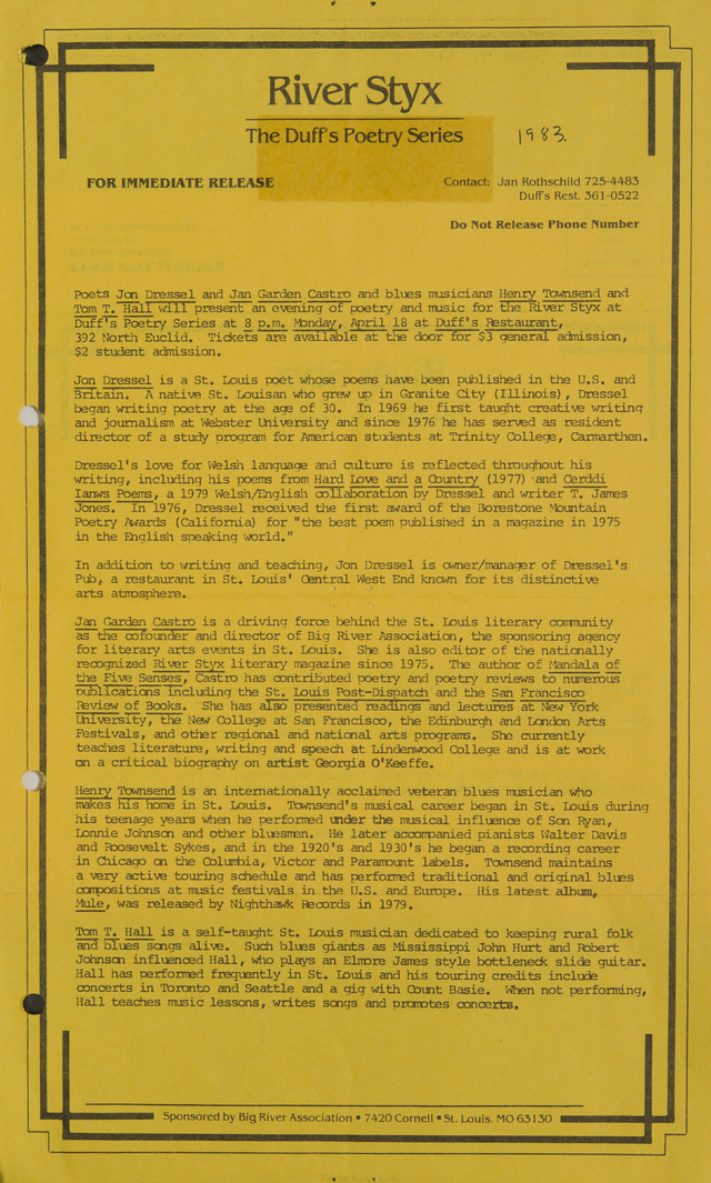 River Styx - The Duff's Poetry Series (Image)