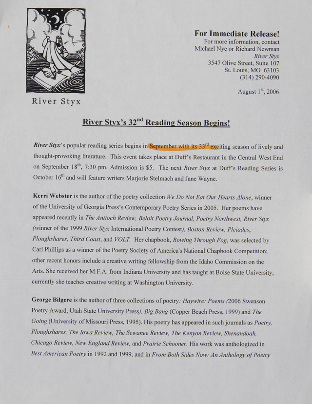 River Styx 32 reading Season Continues (Image)