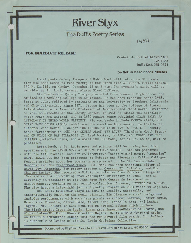 River Styx - The Duff's Poetry Series (Image)