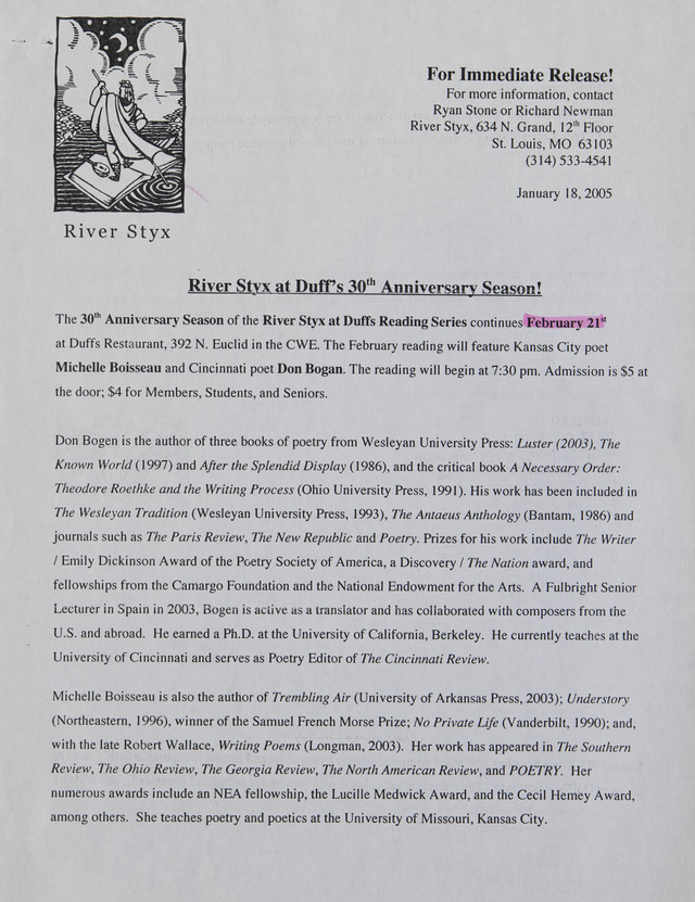 • Poetry event information for immediate release