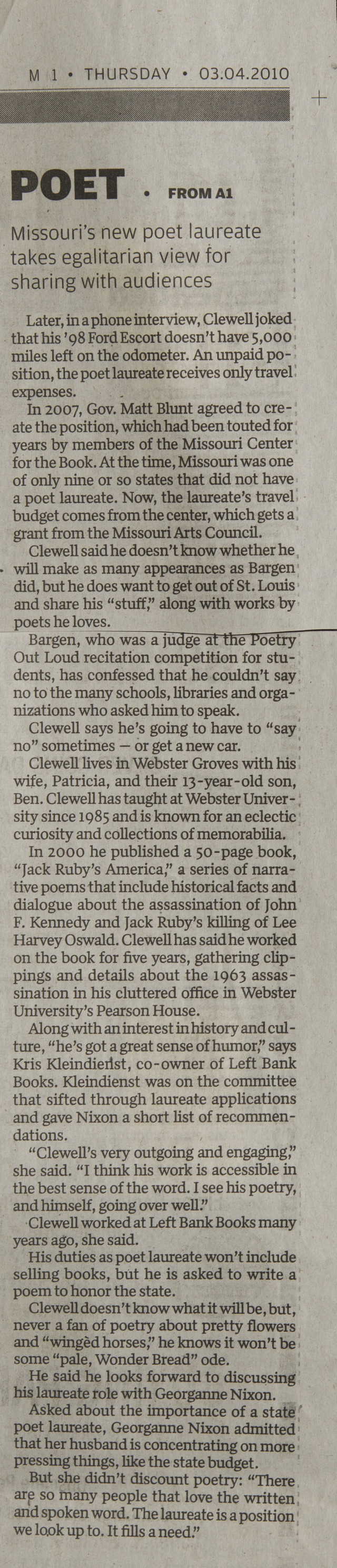 Missouri's new poet laureate takes egalitarian view for sharing with audiences (Image)