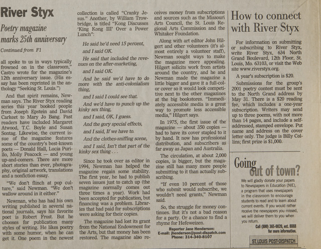 - Newspaper article marking the poetry magazine's 25th anniversary