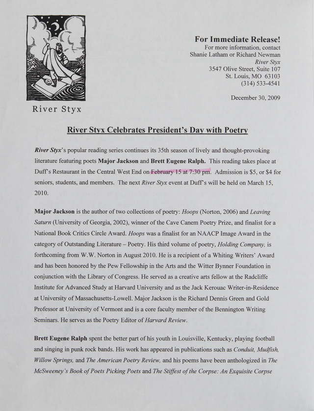 River Styx Celebrates President's Day with Poetry (Image)