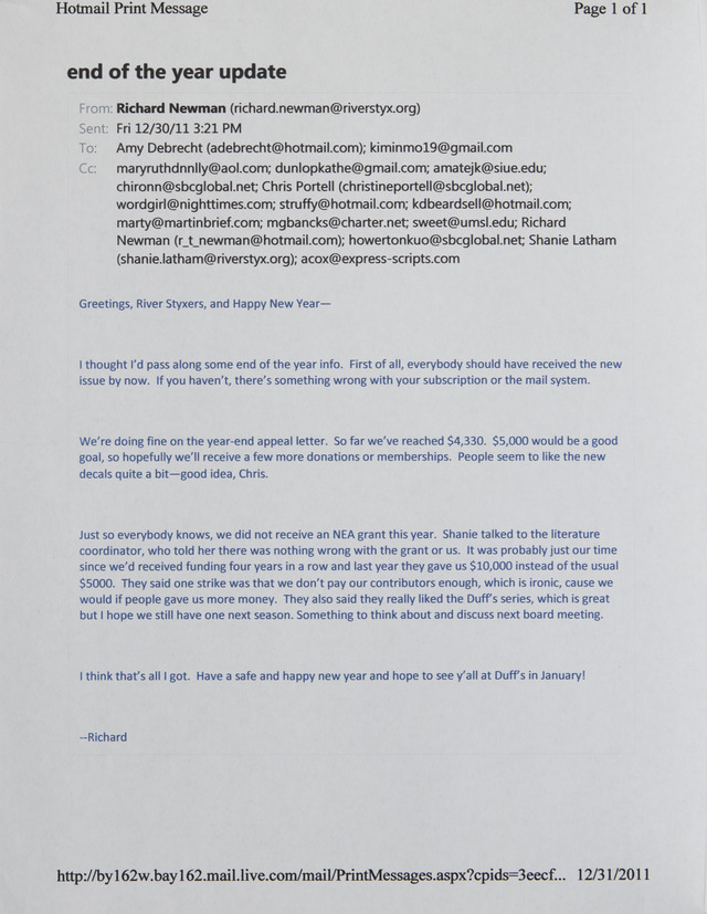 River Styx's end of the year update. (Image)