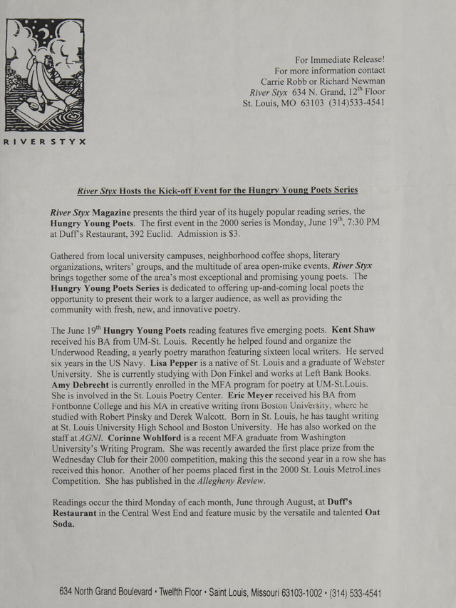 River Styx Magazine Presents the Hungry Young Poets Summer Reading Series (Image)