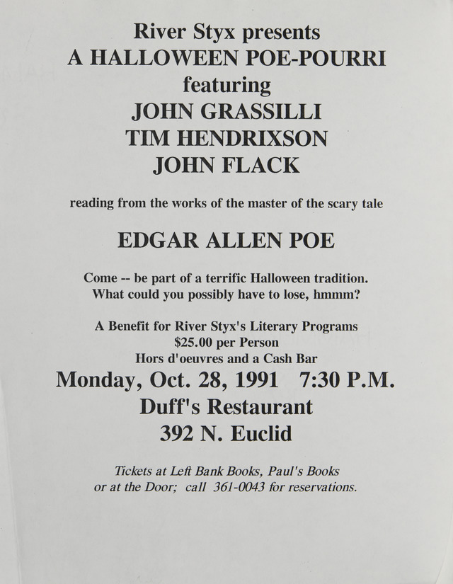 River Styx presents A Halloween Poe-Pourri featuring John Grassilli, Tim Hendrixson, John Flack (Image)