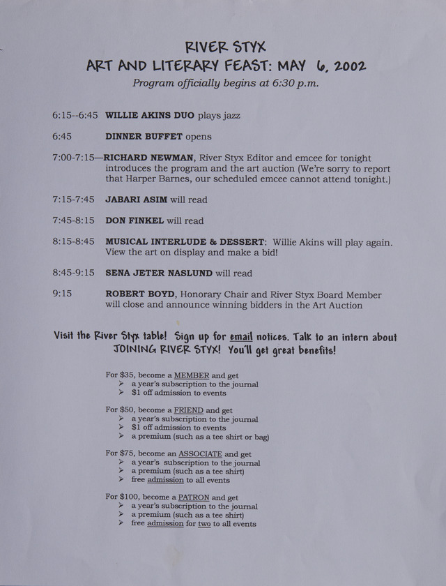 The Art & Literary Feast Schedule (Image)