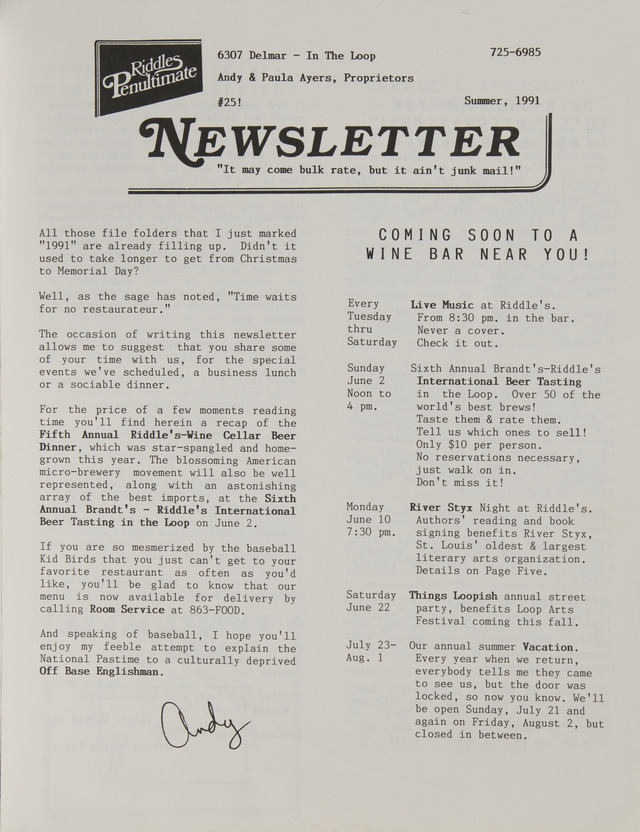 Riddles Penultimate Newsletter (Image)