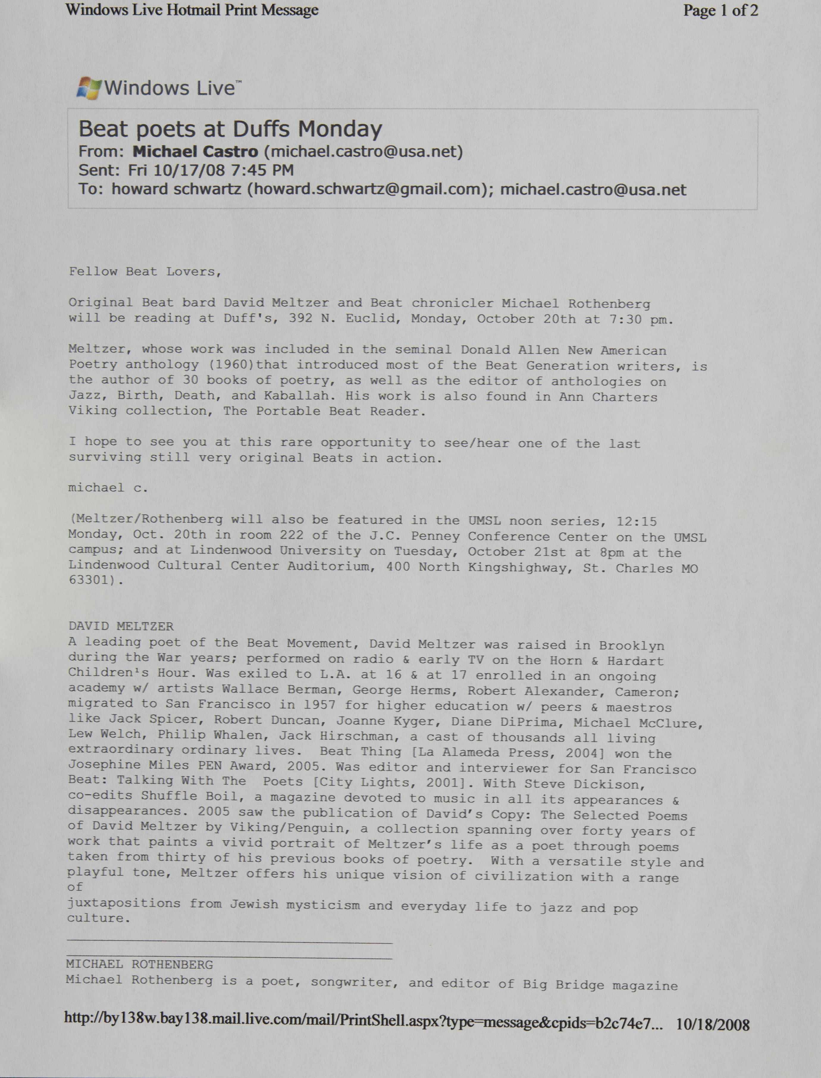 Beat Poets at Duffs Monday Email (Image)