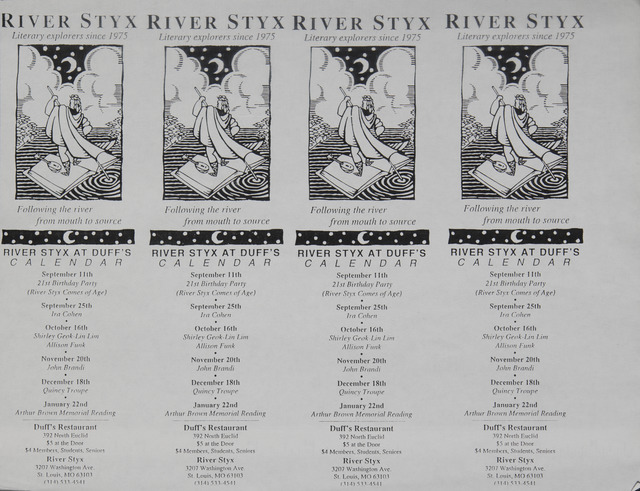 - Calendar of River Styx poetry readings at Duff's