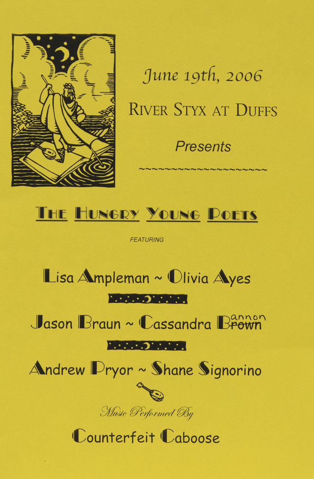 • A flyer for the hungry young poets performing at Duff's