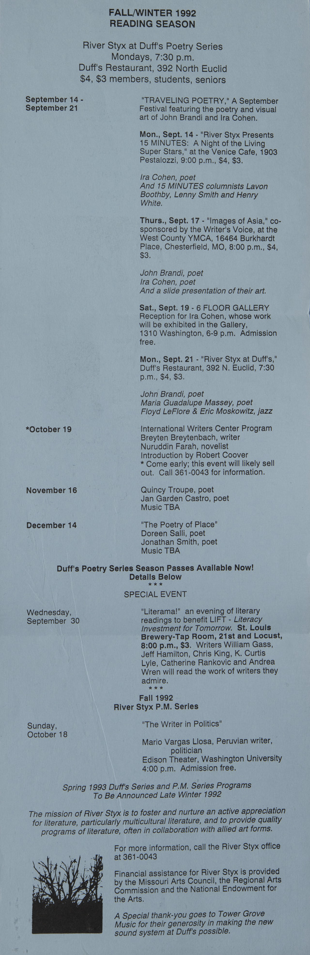 - Schedule for River Styx at Duff's Poetry Series
